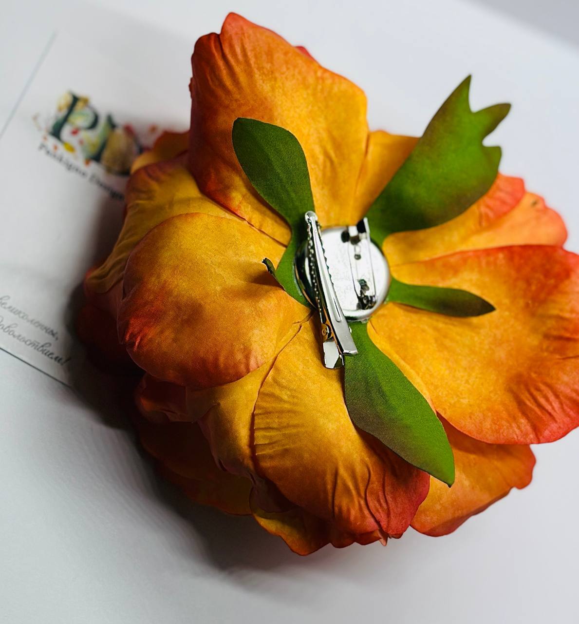Шикарная брошь-заколка от бренда Pankigno Design станет вашим главным аксессуаром! Она выполнена в виде роскошной пионовидной розы яркого оранжевого оттенка, который привлекает внимание и подчеркивает индивидуальность. Объемная форма цветка добавляет образу элегантности и изысканности. Идеально подходит как для повседневного лука, так и для торжественных мероприятий. Добавьте нотку стиля и уверенности в ваш образ уже сегодня!