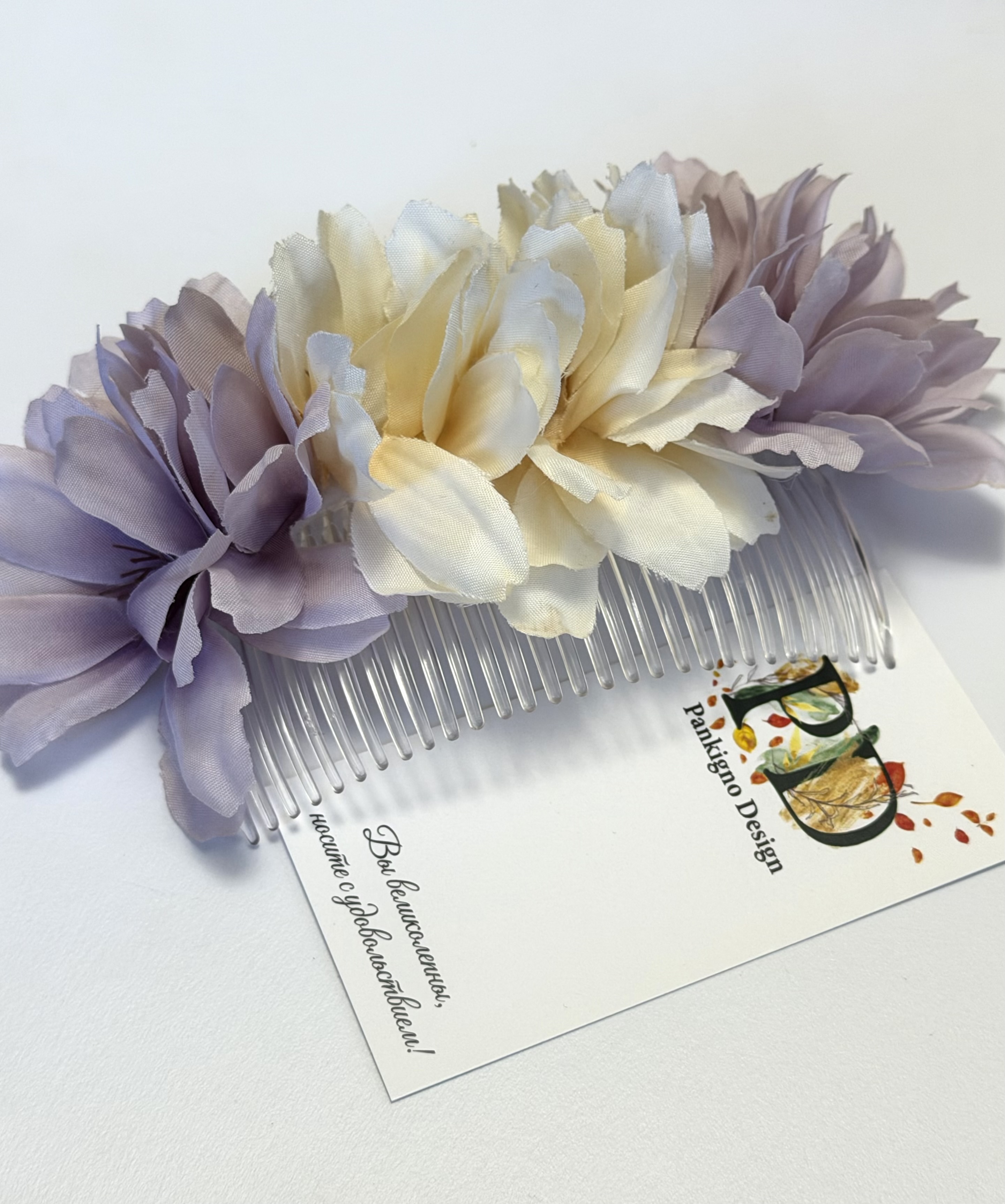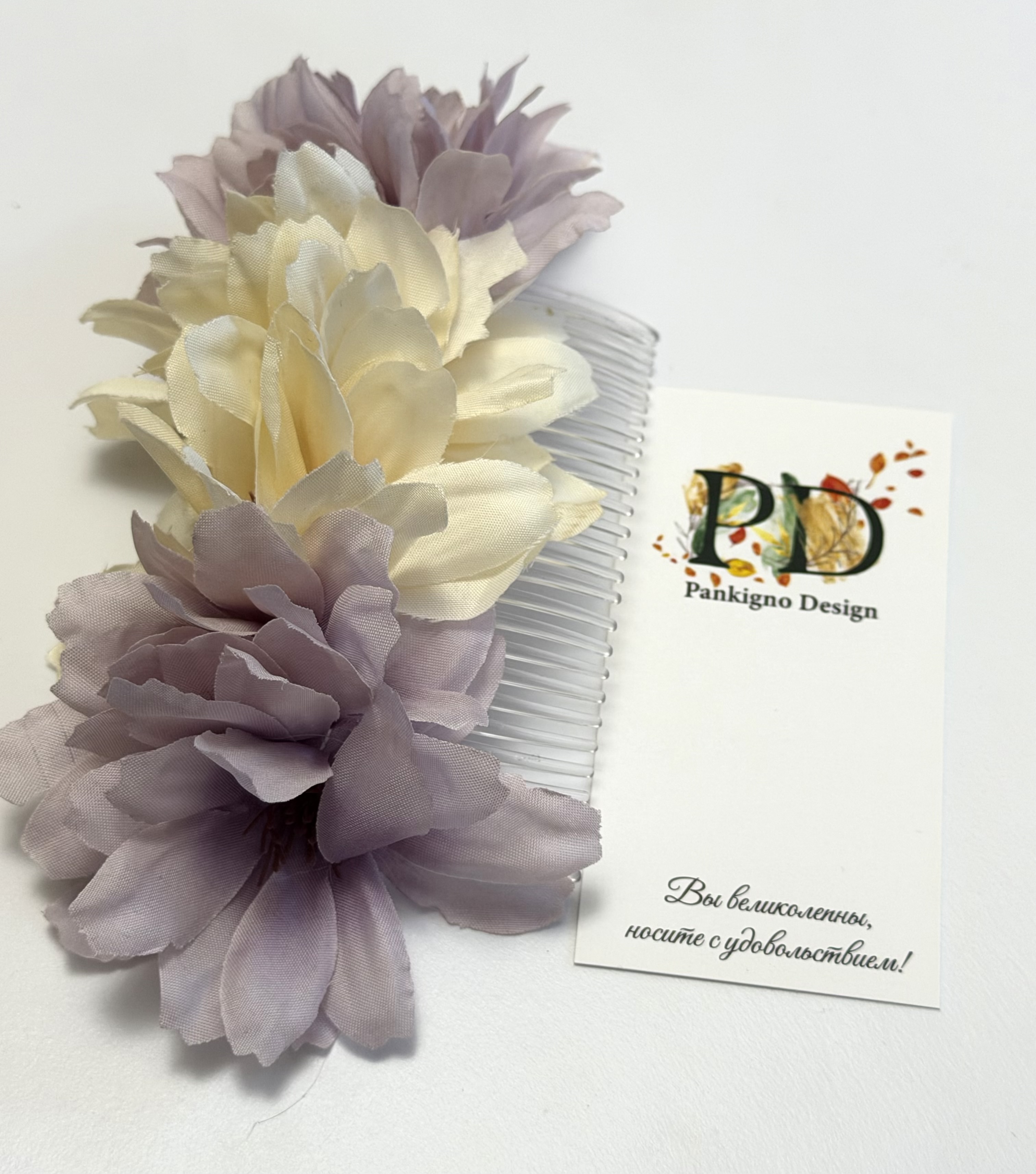 Гребень Pankigno Design "Нежность" – это стильный аксессуар, созданный вручную из качественных материалов. Он украшен изящно цветочным вставками, подчеркивающим женственность и утонченность своего обладателя. Преимущества: - Ручная работа гарантирует уникальность каждого изделия; - Нежные цвета создают приятное эстетическое восприятие; - Надежно фиксирует прическу и подходит как повседневный аксессуар.