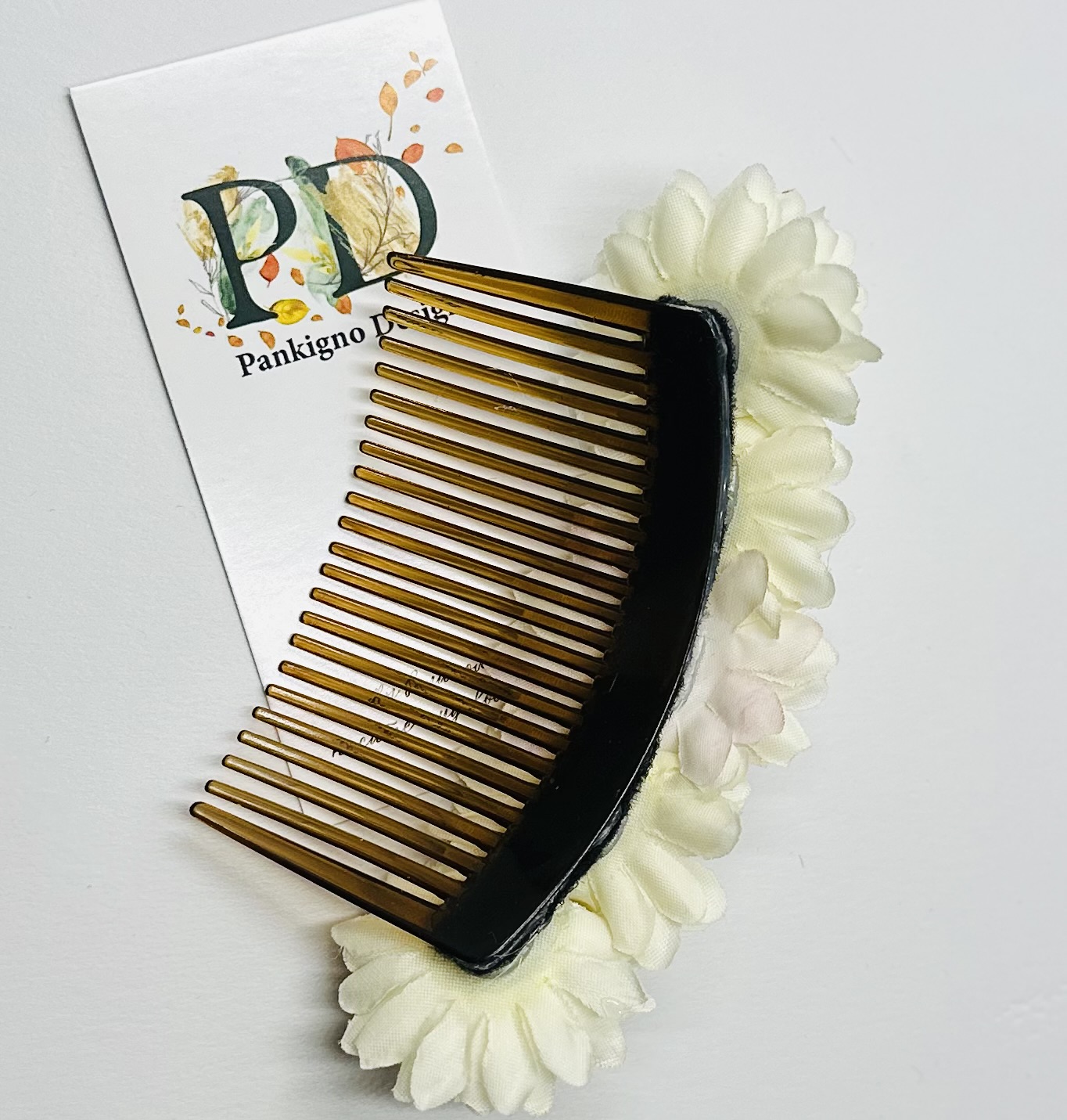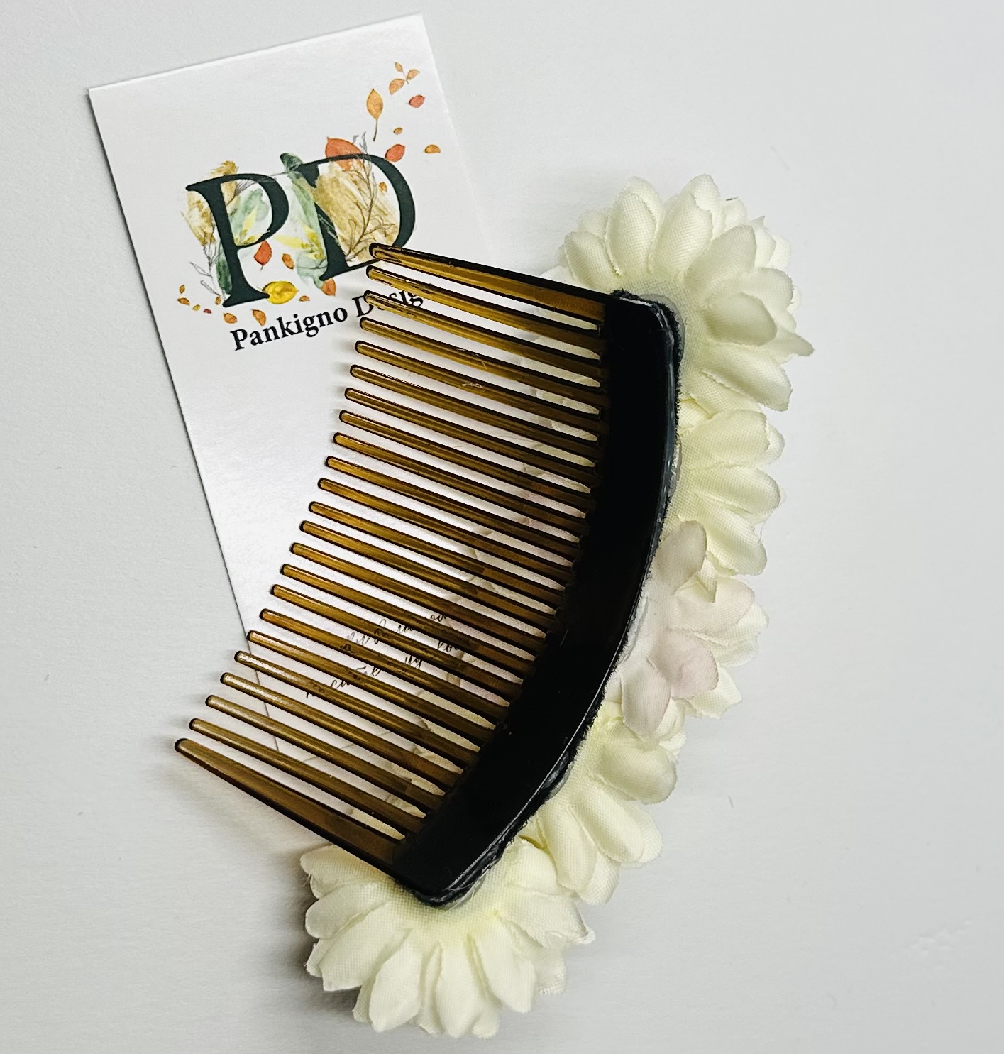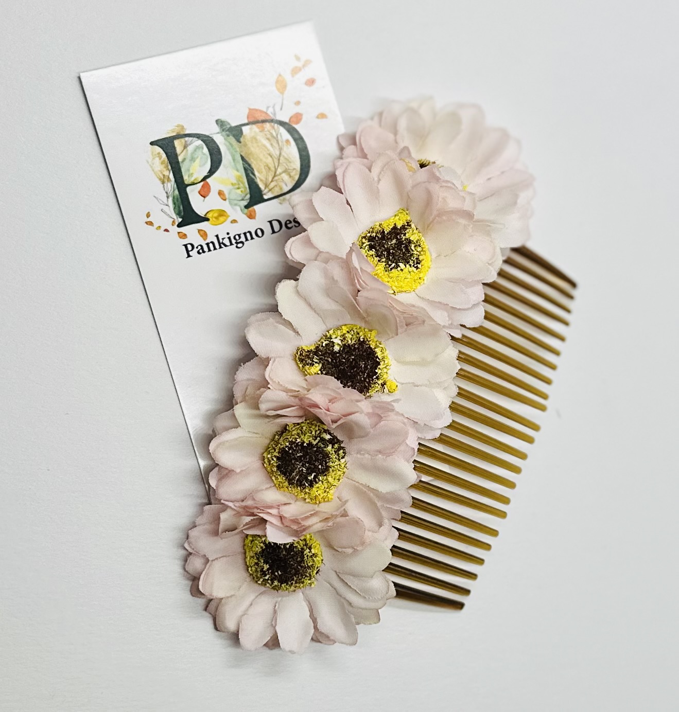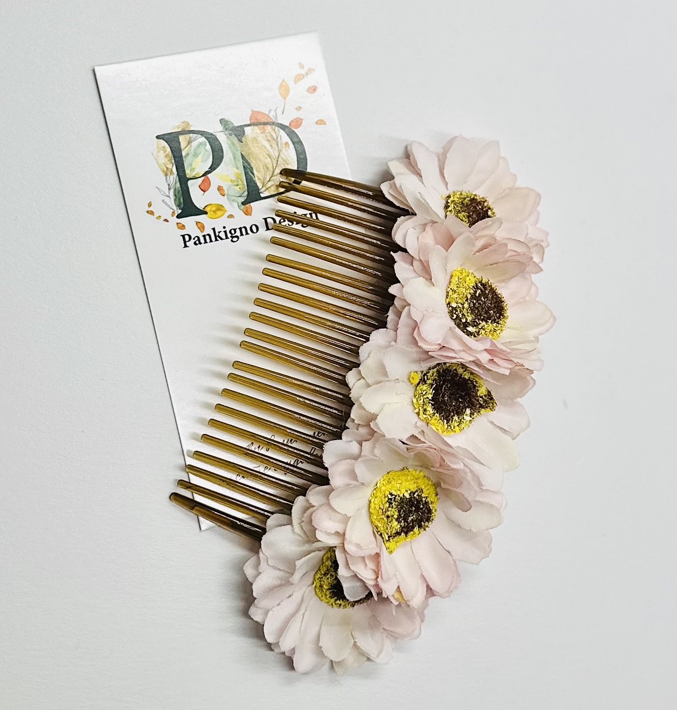 Гребень Pankigno Design с изящным цветками хризантемы подчеркнет вашу индивидуальность и станет стильным аксессуаром для любого образа. Ручная работа гарантирует уникальность изделия и высокое качество исполнения. Легкий вес (всего 20 г) обеспечивает комфортное ношение без ощущения тяжести. Идеален как повседневный элемент причёски, так и для особых случаев – свадебных церемоний, фотосессий или вечеринок. Добавьте нотку элегантности вашим образам вместе с этим изысканным гребнем!