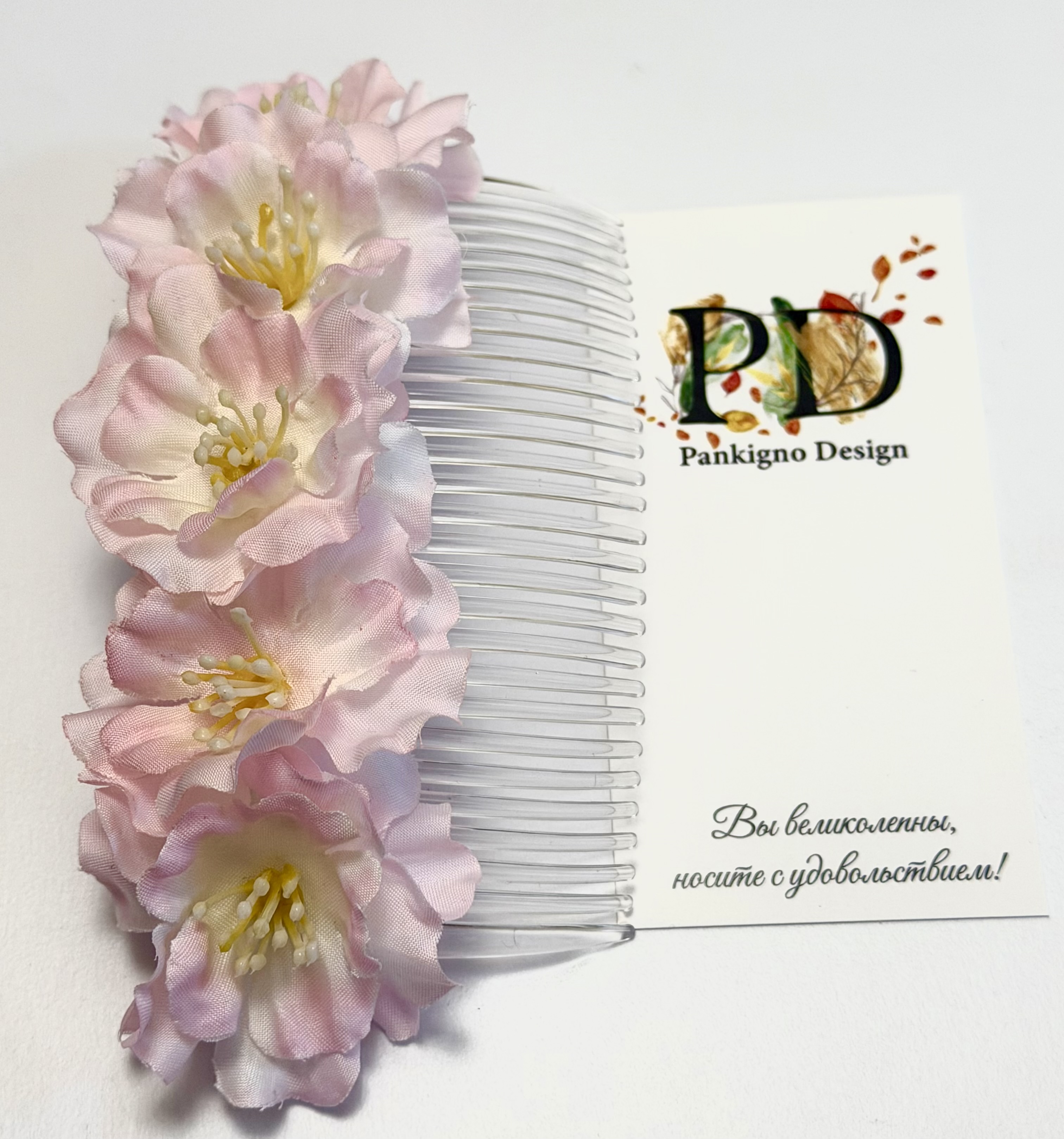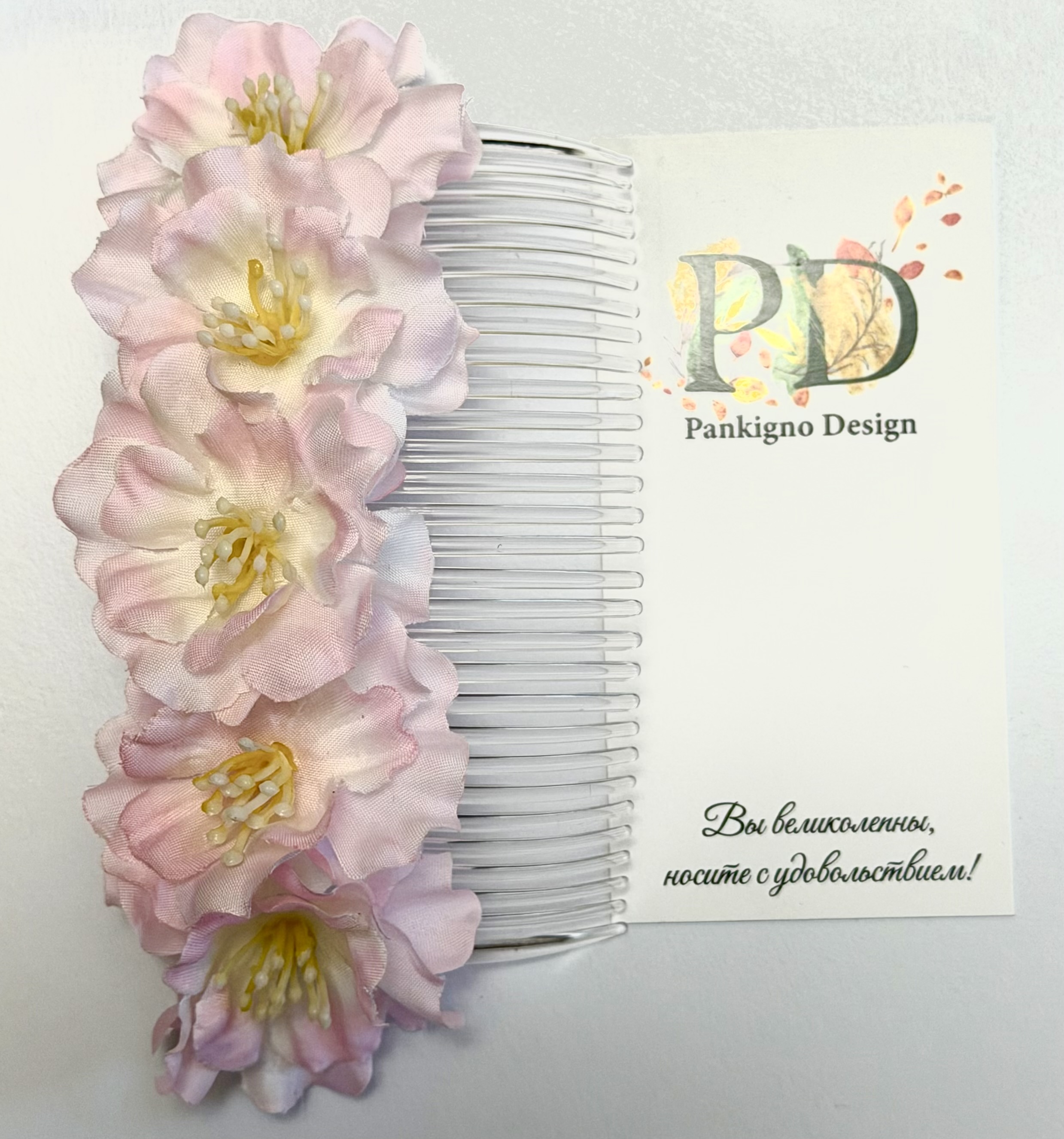 Гребень Pankigno Design "Цвет Вишни" — изысканный аксессуар, подчеркивающий индивидуальность и стиль. Использование гребня помогает бережно расчесывать волосы, избегая повреждений, а также фиксирует прическу, придавая ей аккуратность и элегантность. Ручная работа гарантирует уникальность изделия, делая его идеальным подарком или оригинальным дополнением к собственному имиджу.