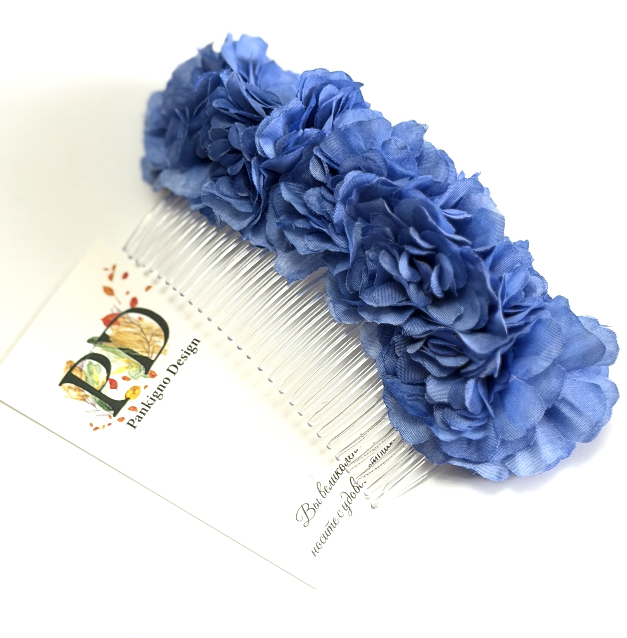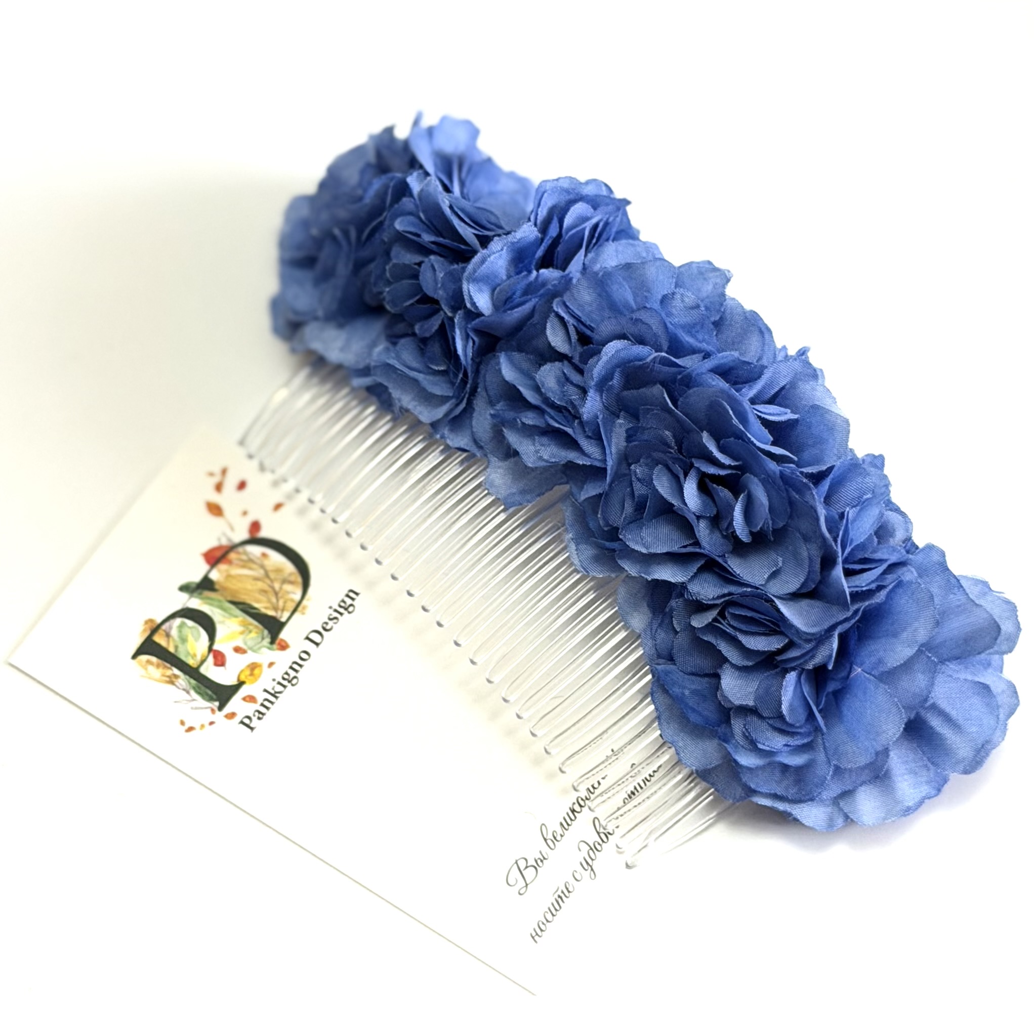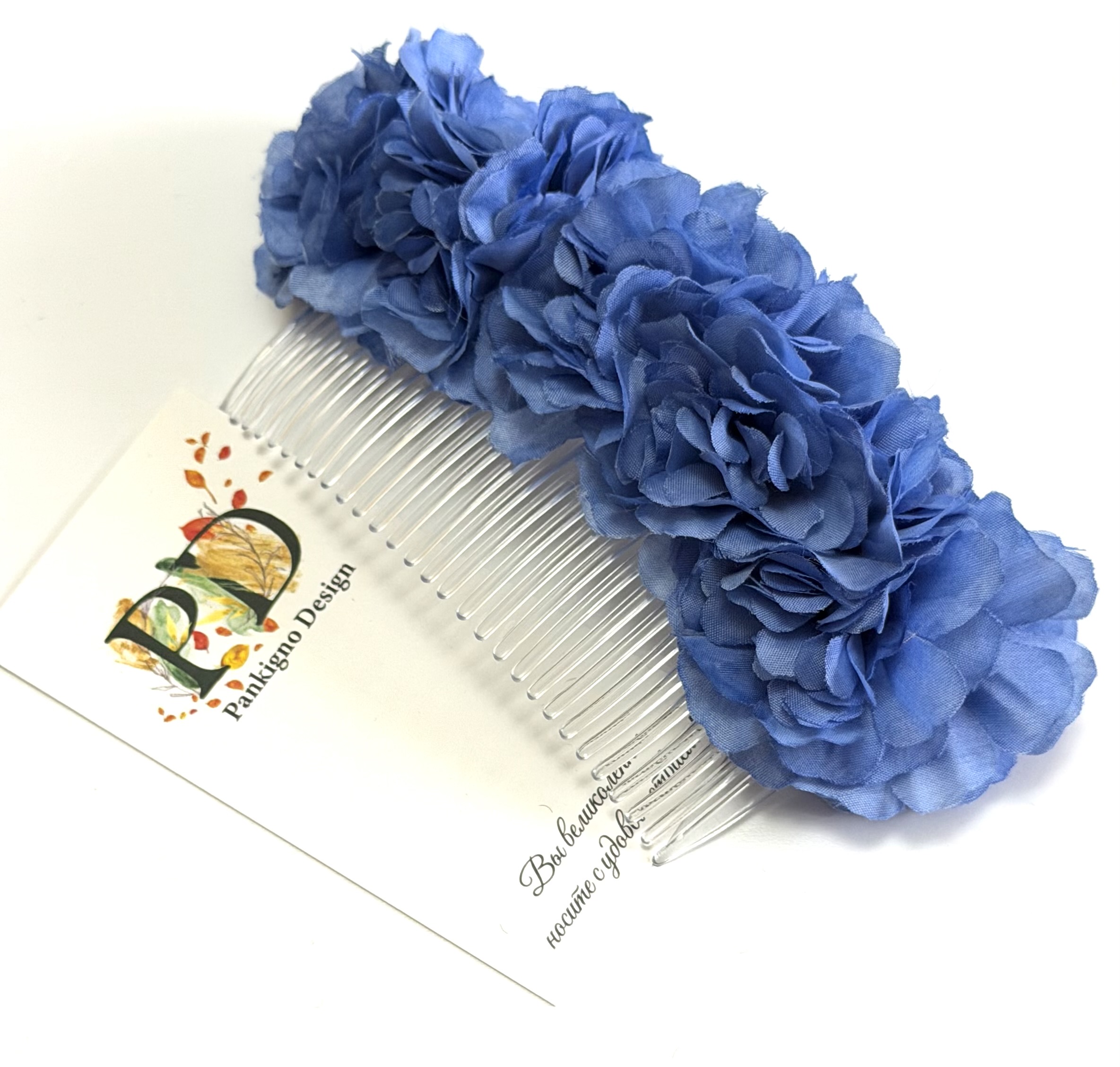 Гребень Pankigno Design "Василек" – это стильный аксессуар ручной работы, который подчеркнет индивидуальность и станет незаменимым помощником при создании причесок. Василеобразные элементы добавляют нежности и очарования, идеально дополняя любой образ. Изготовлен из качественных материалов, удобен в использовании и уходе. Вес всего 45 г обеспечивает комфортное ношение без ощущения тяжести. Идеальный подарок себе или близким!