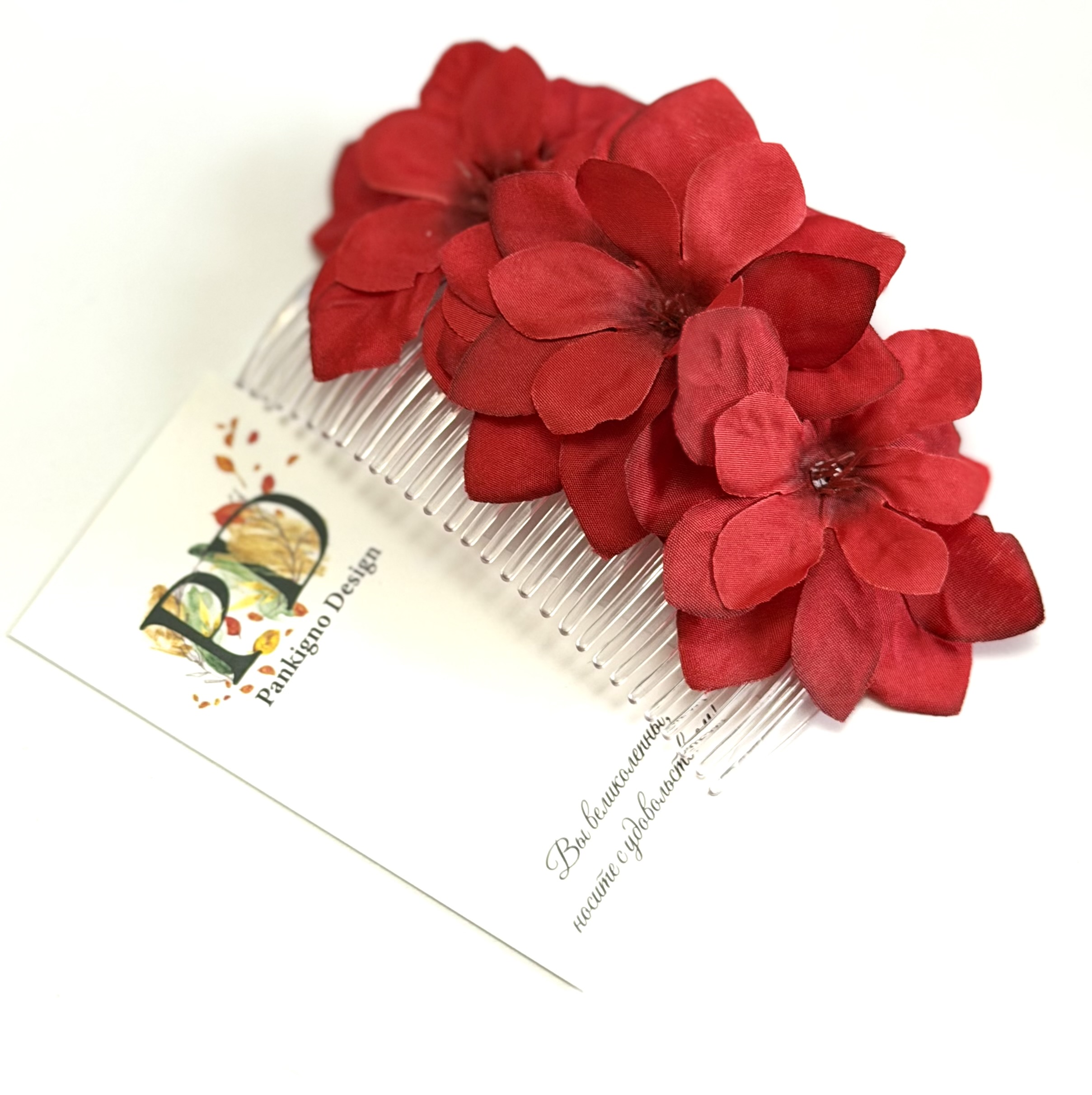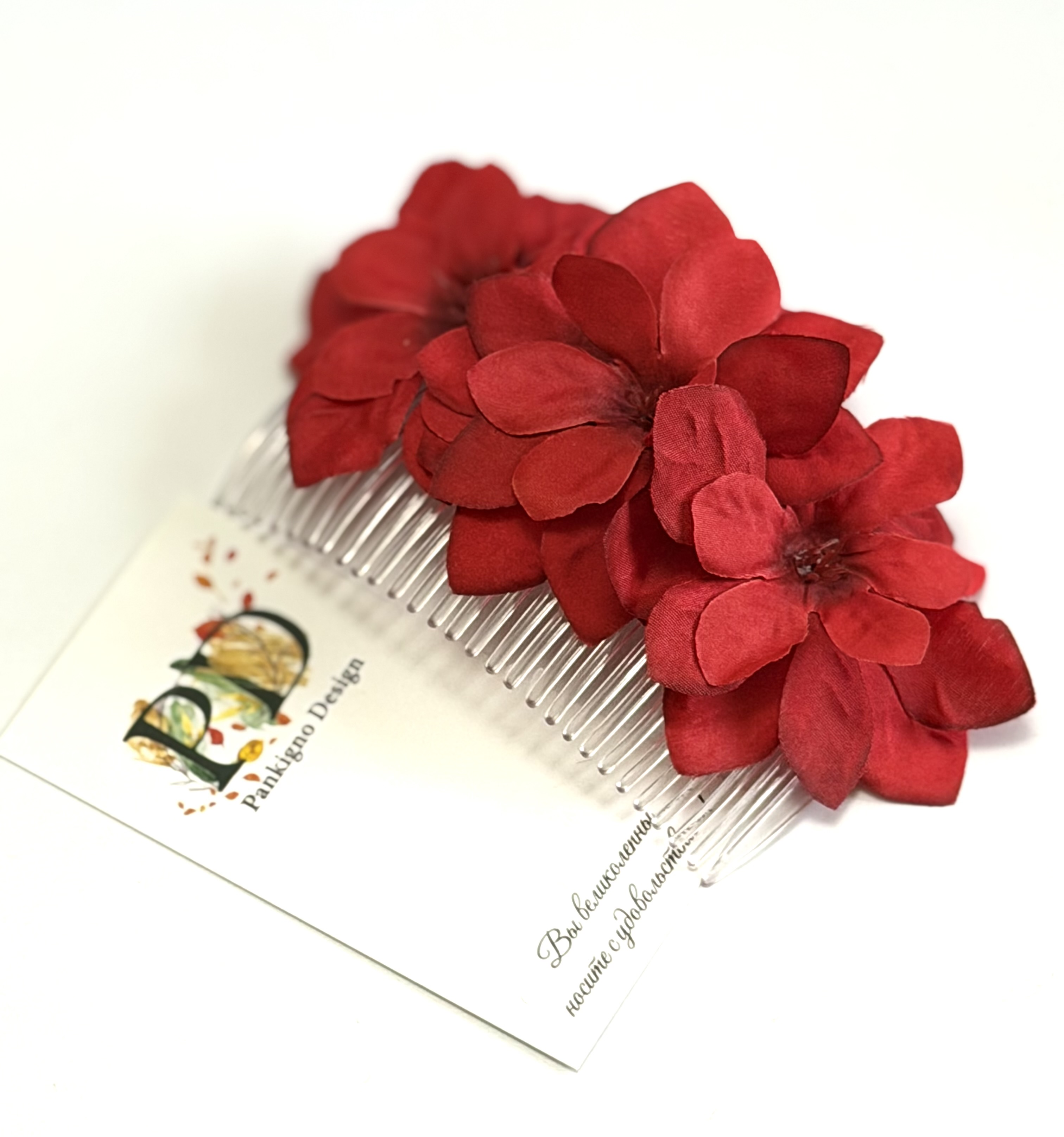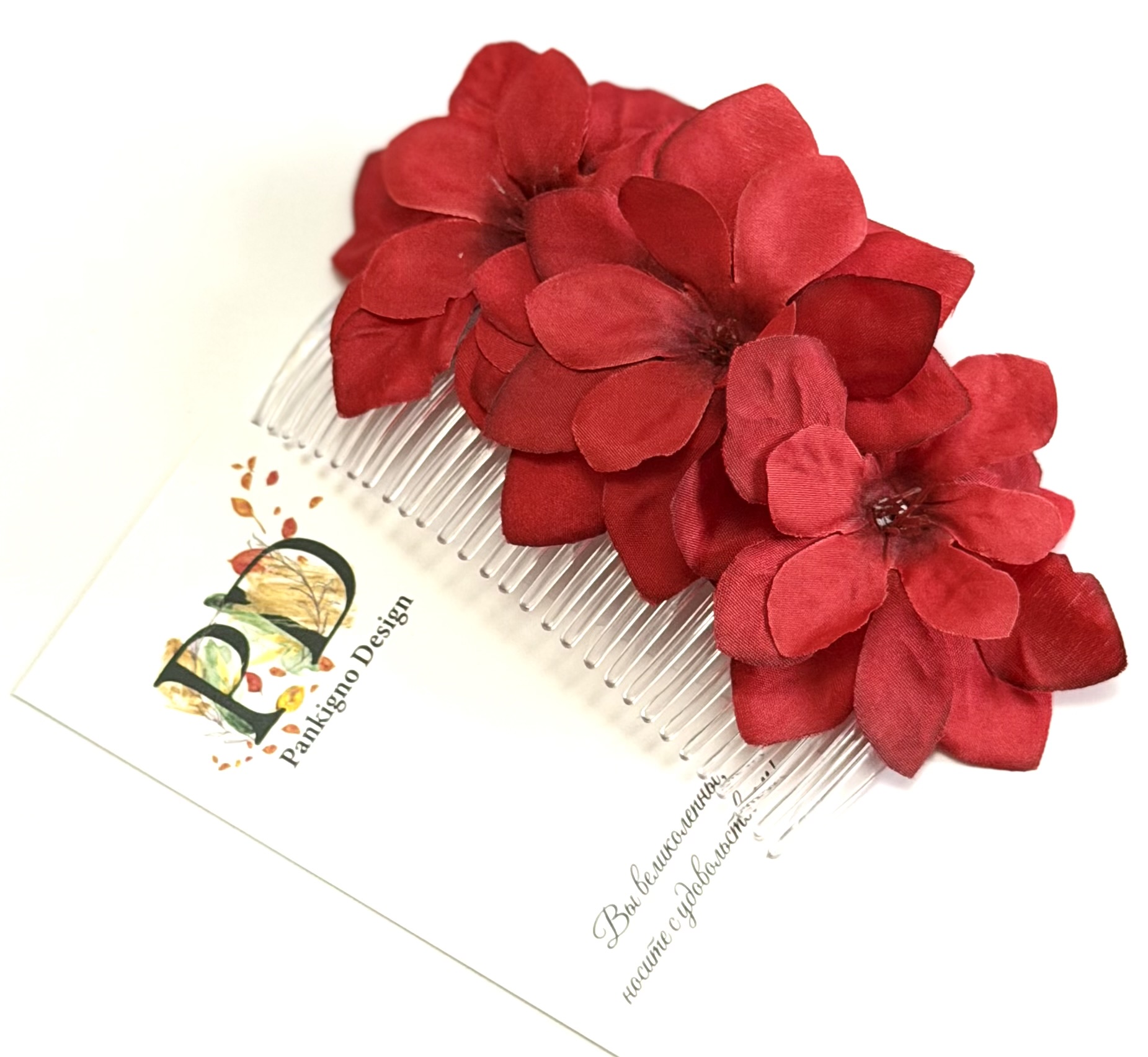 Гребни Pankigno Design не только красивы, но и функциональны. Они надежно фиксируют волосы, позволяя создавать как простые, так и сложные укладки — от романтичных локонов до строгих причесок. Эти аксессуары отлично подходят для повседневной носки, а также для особых случаев, таких как свадьбы, вечерние мероприятия или праздники.