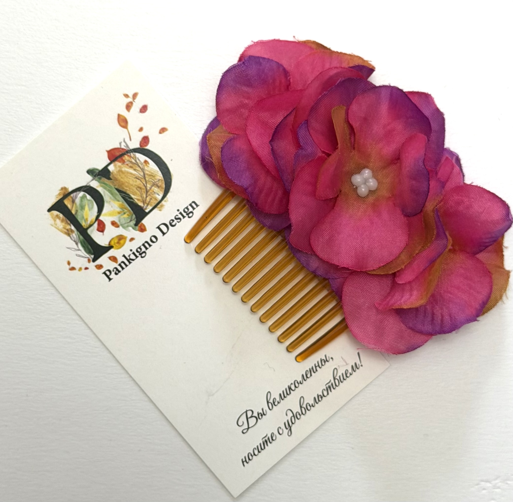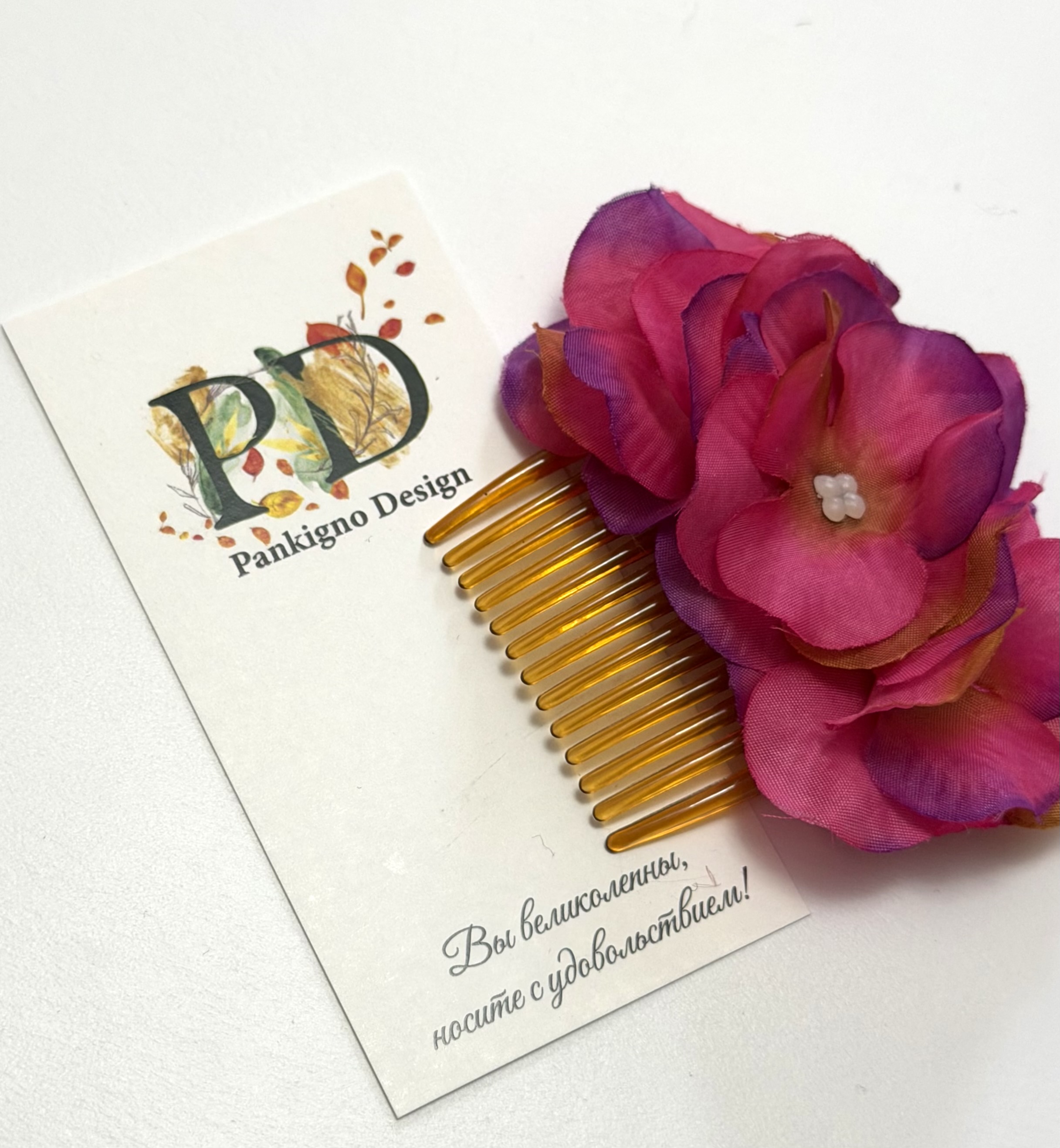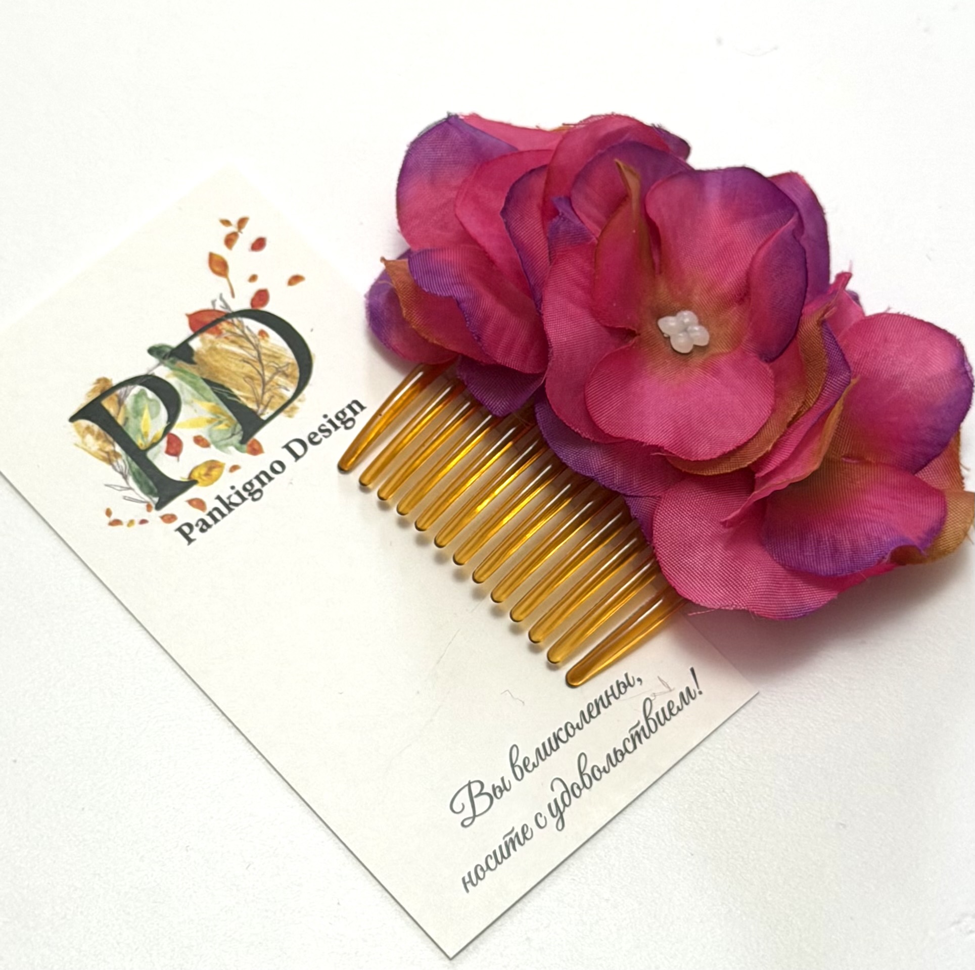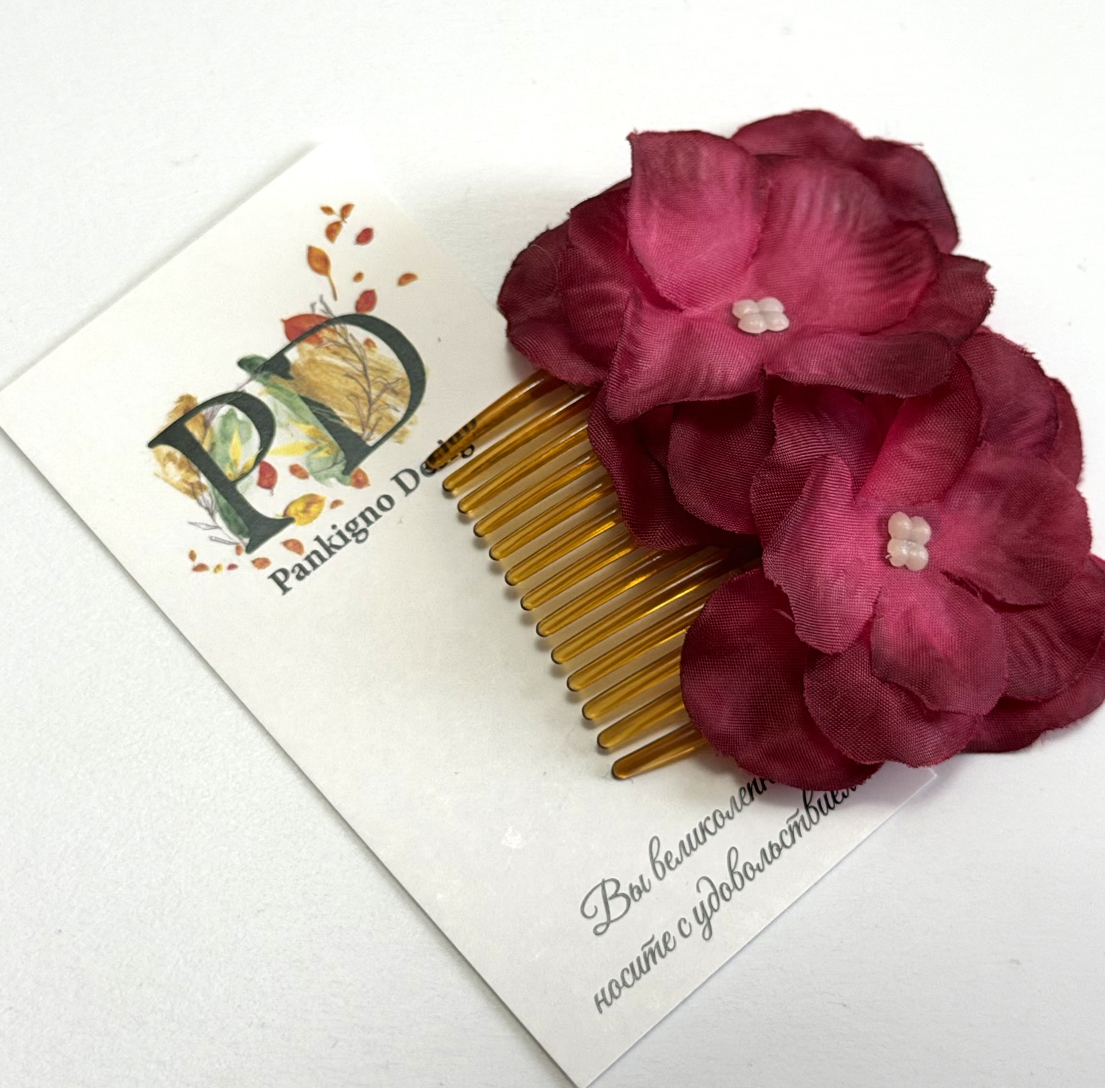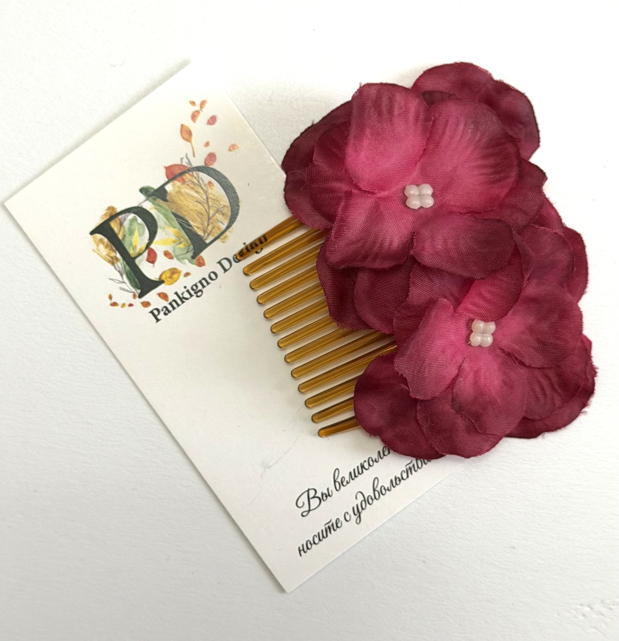 Мини-гребень Pankignо Dеsign с гортензией – это элегантное решение для ухода за волосами! Ручная работа гарантирует уникальность изделия. Легкость (всего 50 г) позволяет носить его ежедневно, а изящный дизайн с цветком станет стильным аксессуаром. Он бережно расчесывает волосы, предотвращает их повреждение и способствует блеску. Подходит как повседневное средство по уходу либо стильный акцент образа.
