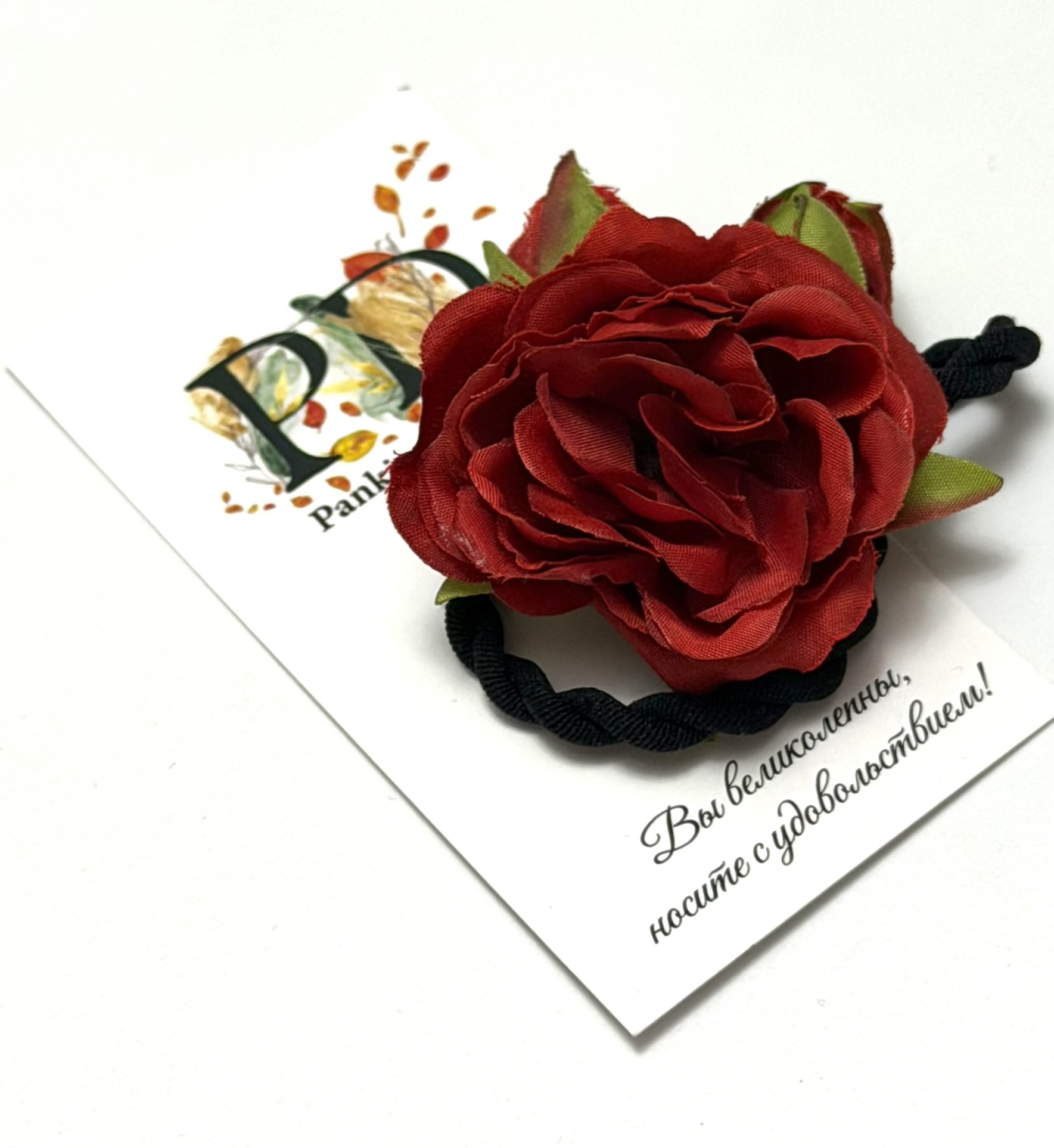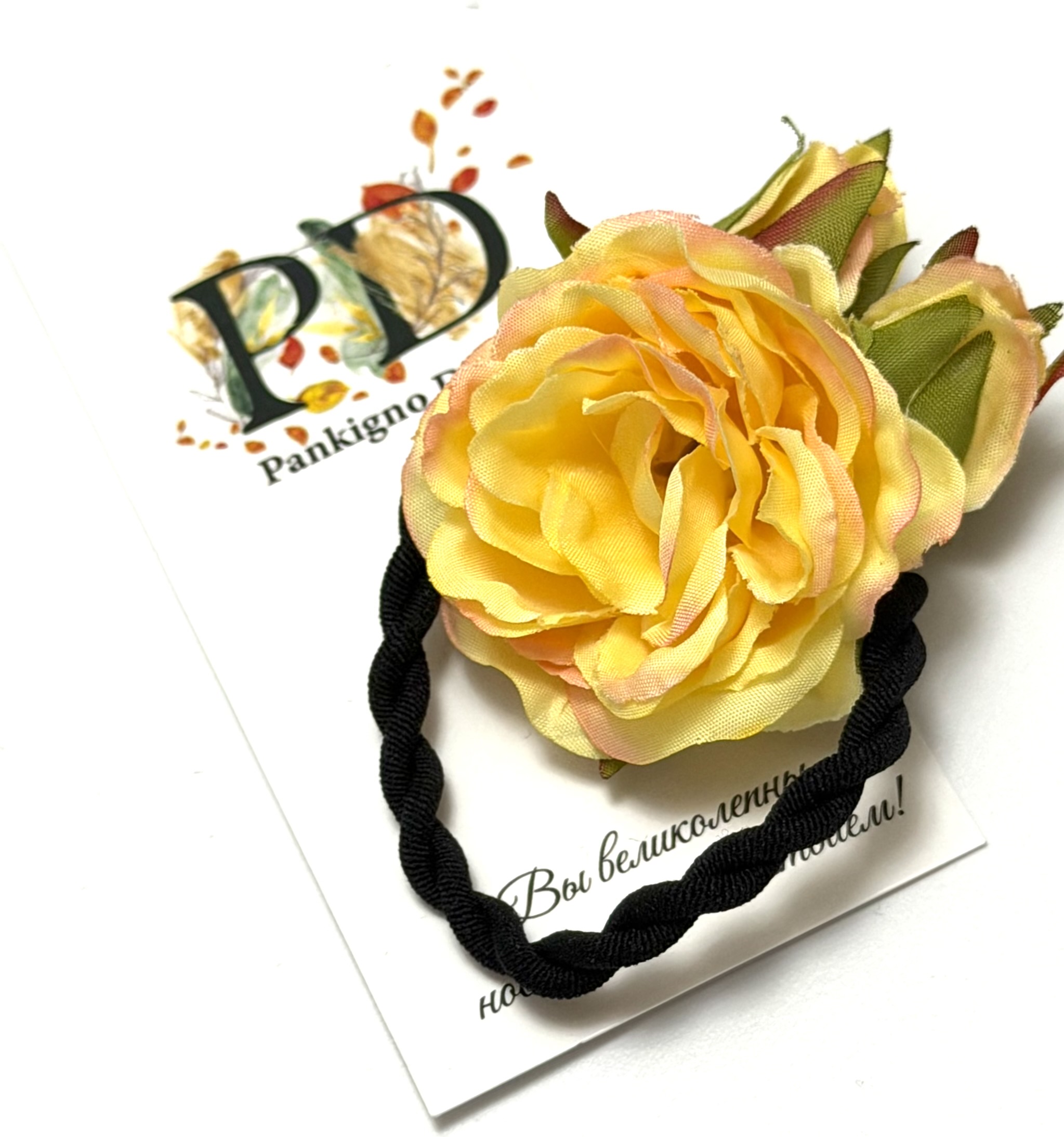Наша резинка для волос Pankigno Design – это уникальное изделие ручной работы, выполненное в виде нежной розы с изысканными бутонами. Этот аксессуар станет прекрасным дополнением к любому образу и подойдет как для повседневного использования, так и для особых случаев.