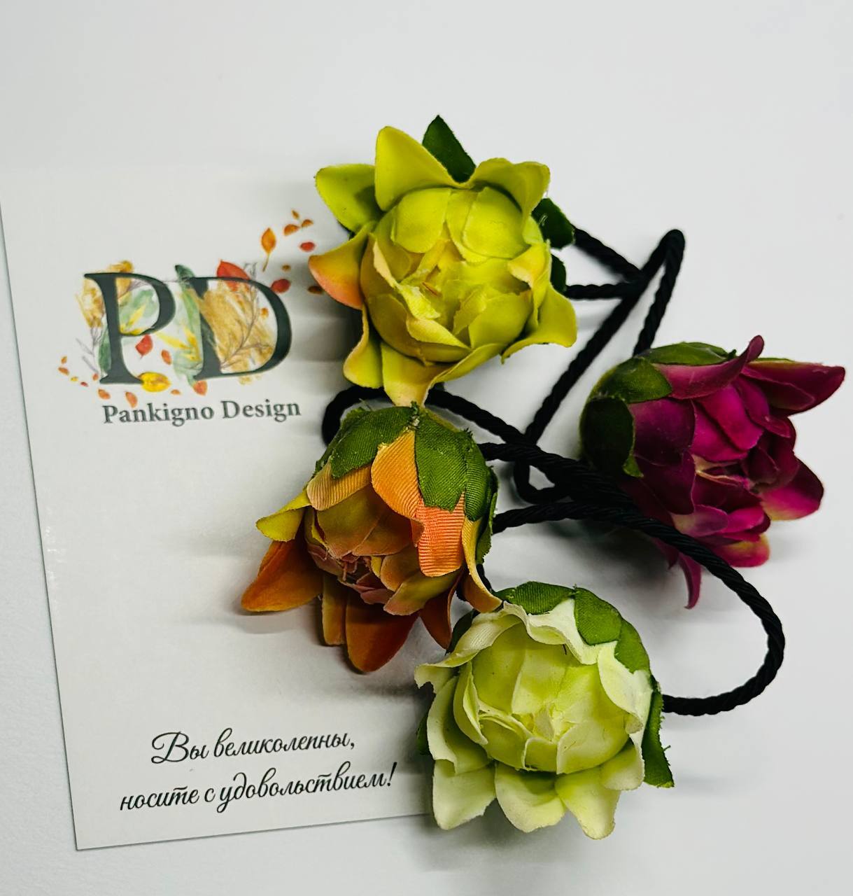 Резинка для волос от Pankigno Design – стильный аксессуар, созданный вручную из качественных материалов. Форма бутона георгина придает изделию изысканность и уникальность, делая образ выразительным и запоминающимся. Идеально подходит детям благодаря безопасности используемых материалов и аккуратному исполнению. Присоединяйтесь к миру элегантности и комфорта вместе с резиночками Pankigno Design!