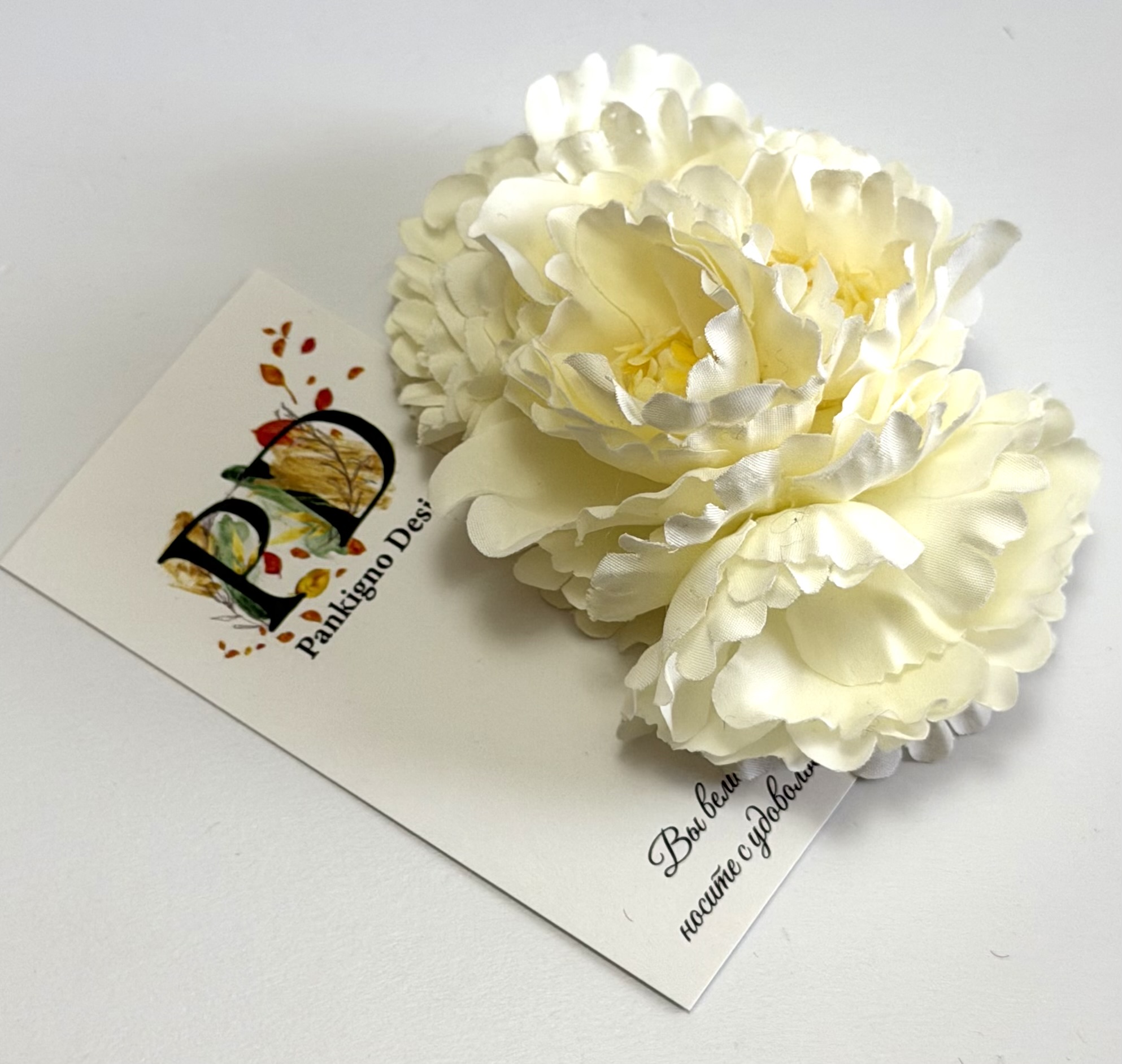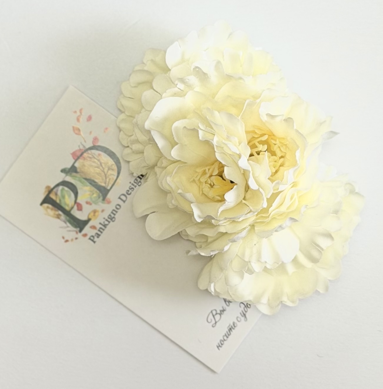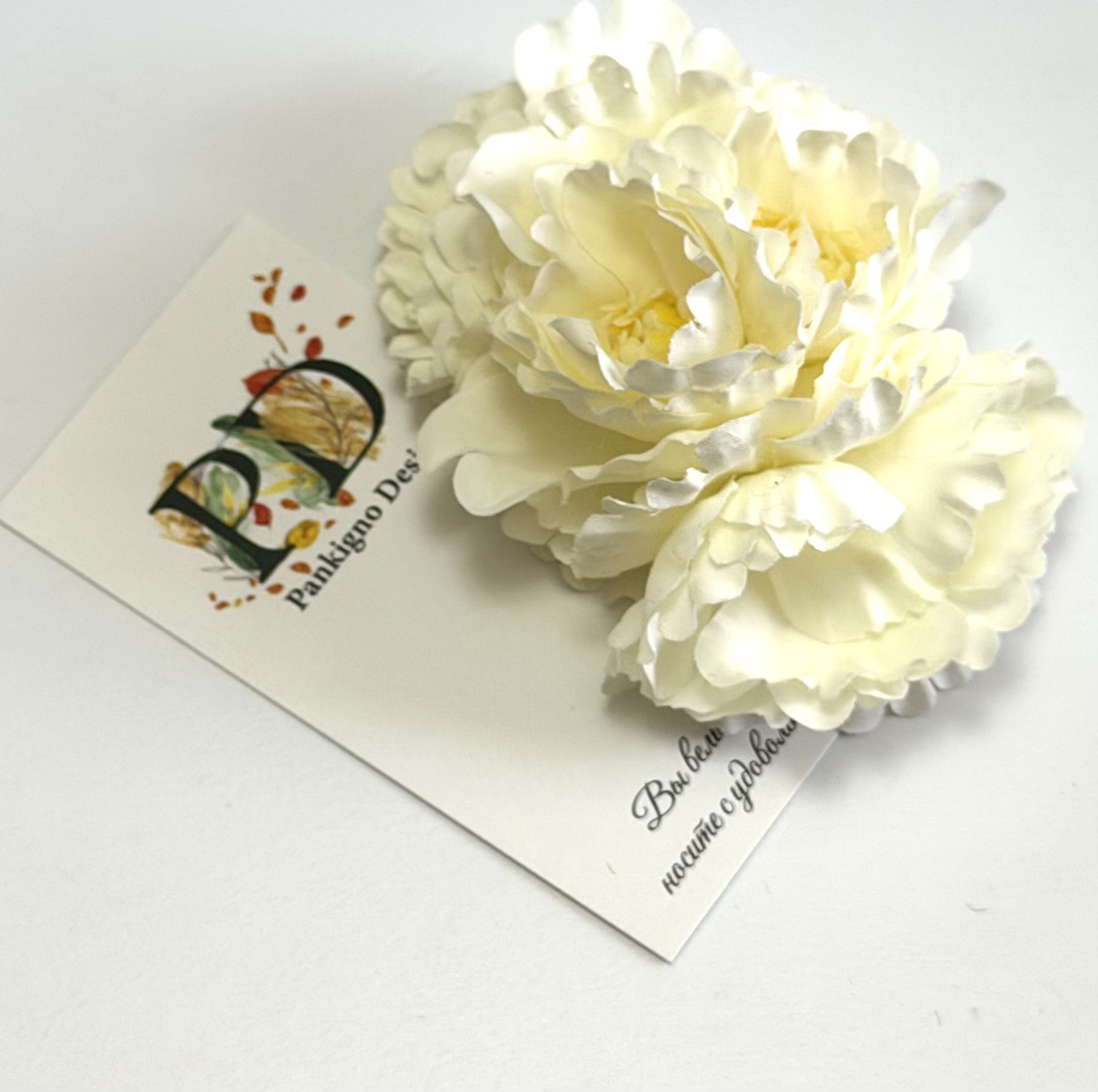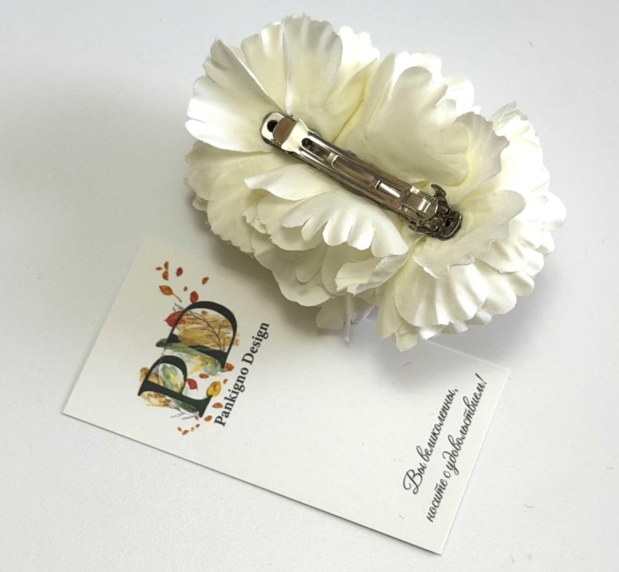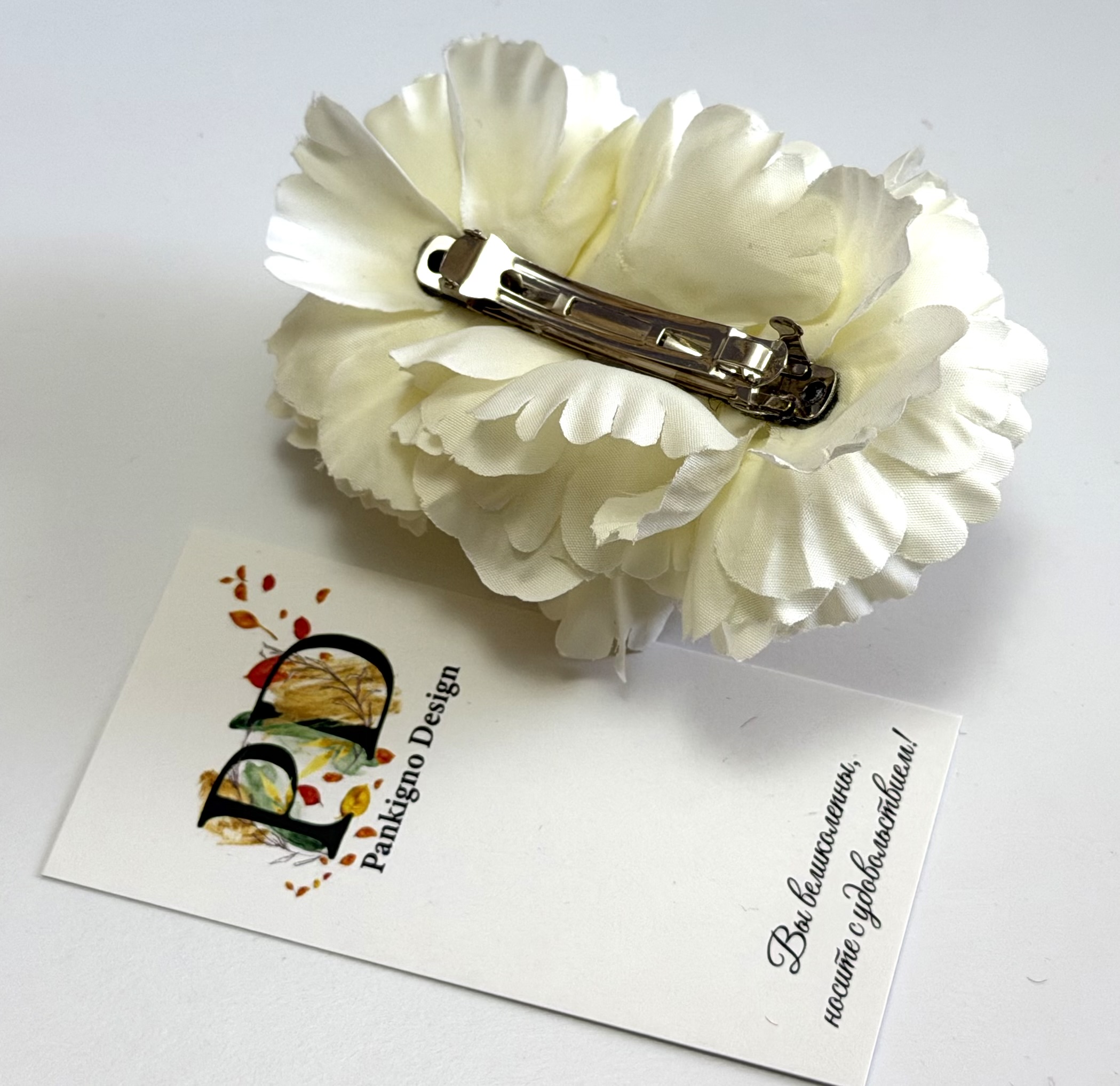 Превосходная заколка-автомат от бренда Pankigno Design — элегантное решение для стильных причесок! Ручная работа гарантирует уникальность каждой детали, а нежные белые пионы подчеркнут вашу индивидуальность и утонченность. Компактный размер (6 см) позволяет удобно носить её ежедневно, а легкий вес всего 0,05 г делает ношение практически незаметным. Добавьте изюминку в свой образ вместе с этой изысканной деталью!